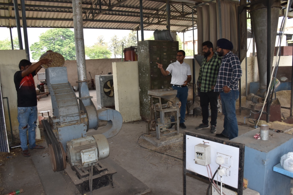 The ICAR-CIAE, Bhopal has a biomass briquetting & pelleting plant for production of 300-350 kg briquettes per hour. It consists of a hammer mill for grinding of biomass, a screw conveyor for feeding the grinded biomass ram and die type briquetting press, a roller die type pelleting machine and pellets. The produced briquettes are used in boilers in agro-industries, brick kiln etc. This activity permits farmers of nearby villages to gain additional income from biomass, which otherwise is burnt in the eld adding pollution to environment.