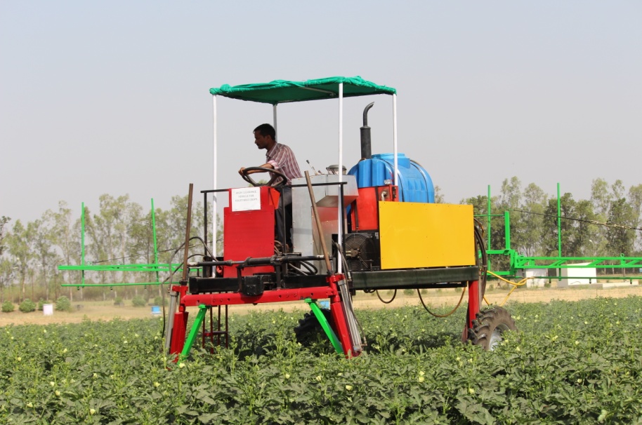 A high clearance multi-purpose vehicle has been designed to carry out these operations in field and horticultural crops like cotton, pigeon pea, sugarcane, okra, tomato, brinjal, chilli, etc.