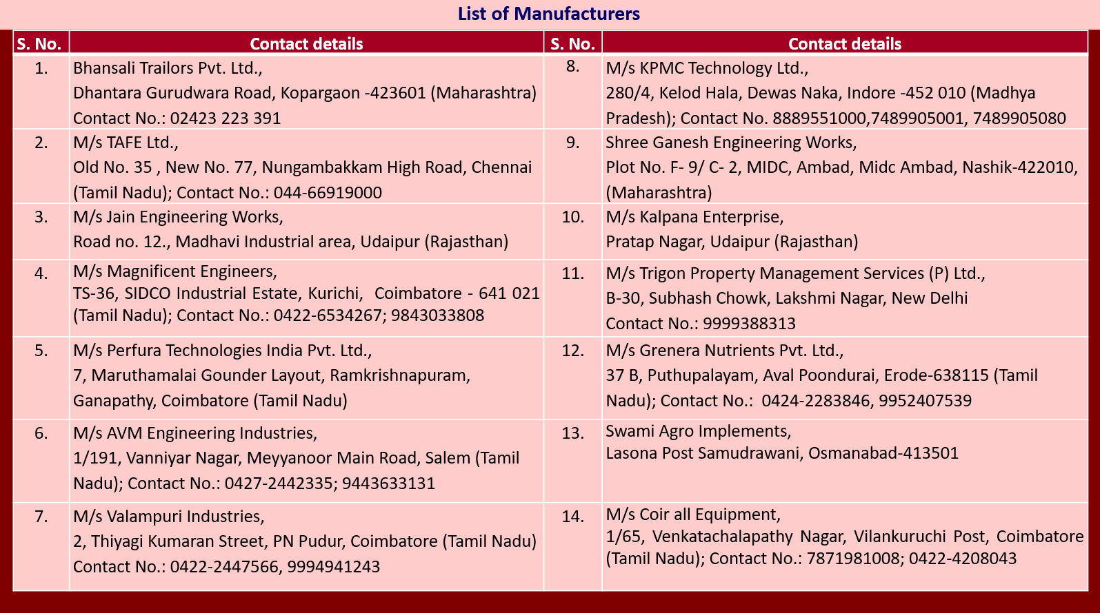 | 11. | Tractor operated multi-crop planter | https:Tractor_operated_multi_crop_planter/11 |